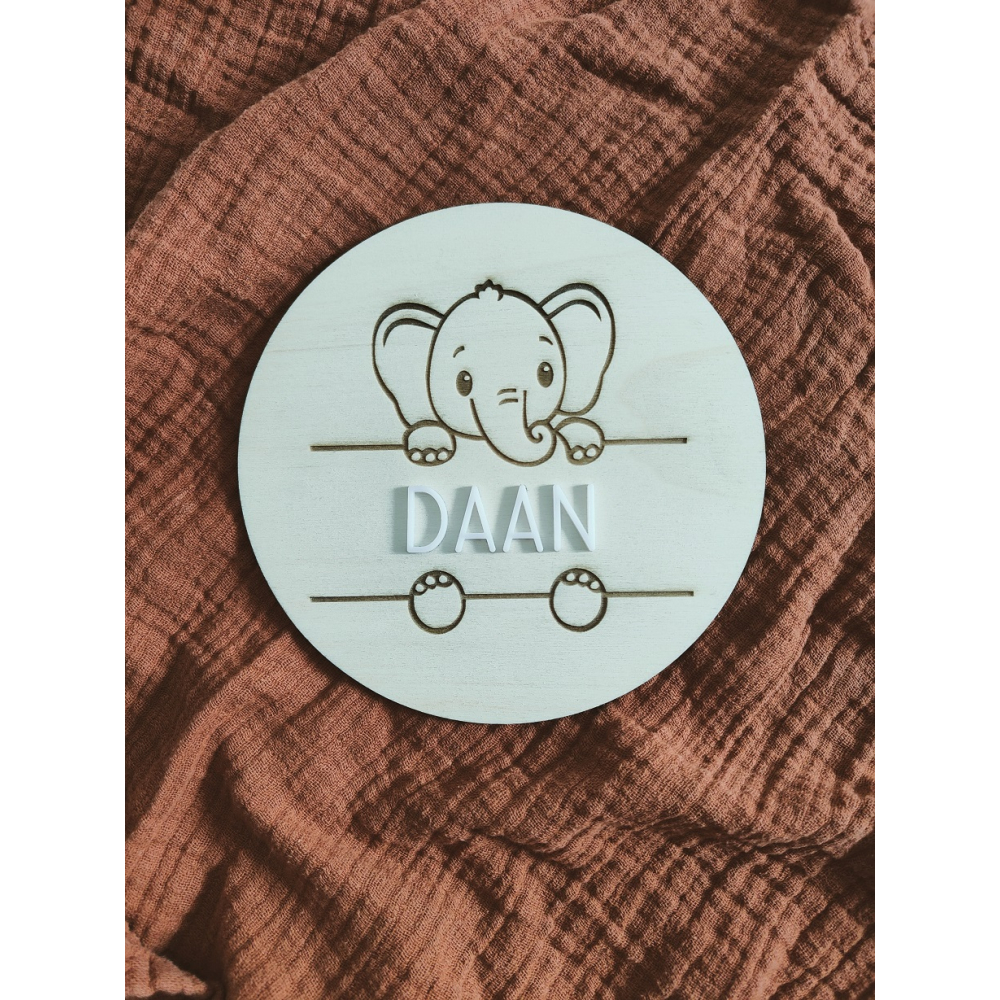Wie wil nou niet de geboorte van je kleintje bekend maken op een bijzondere manier? Deze houten cirkel wordt speciaal voor jou gemaakt met een eigen gekozen dier en de naam in acryl.