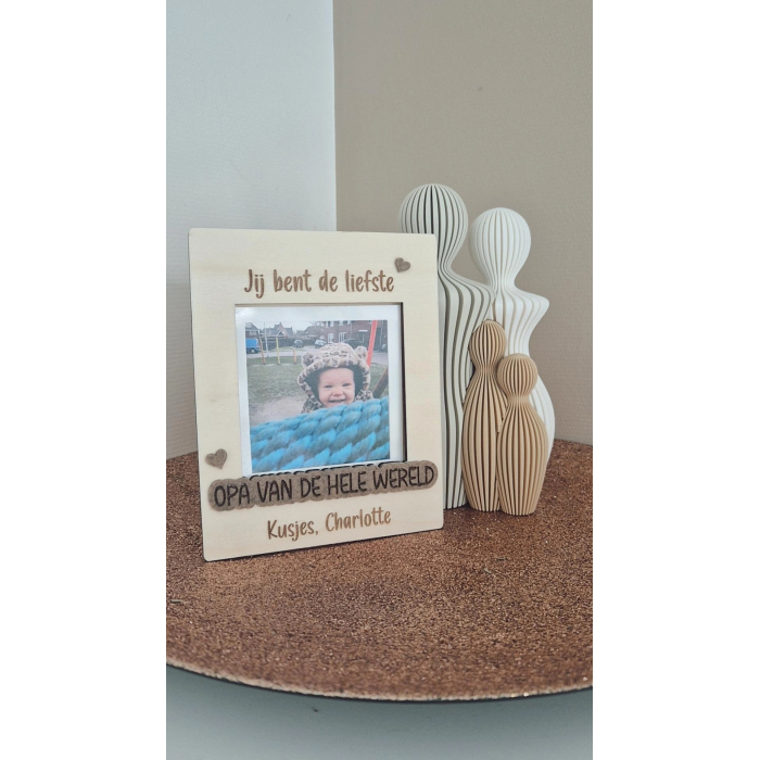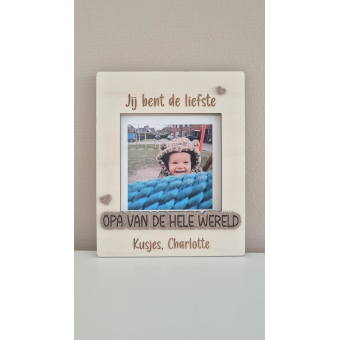 De fotolijst is voorzien van de tekst "Jij bent de liefste papa/opa van de hele wereld" en heeft de mogelijkheid om een foto van 10x10cm te wisselen.