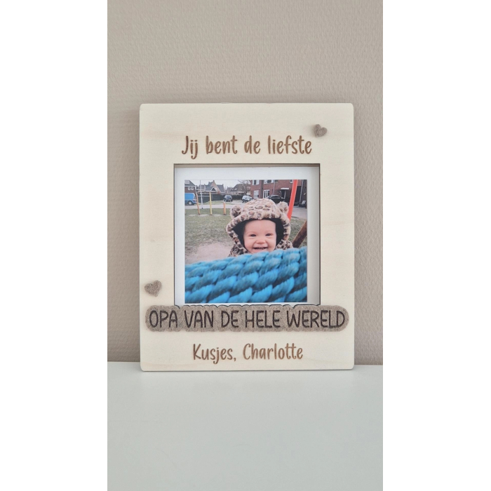 Zo kunnen papa of opa altijd een mooie herinnering aan hun dierbaren in de lijst plaatsen en deze op een speciale plek in huis neerzetten. Een liefdevol en persoonlijk geschenk voor de allerliefste papa of opa!