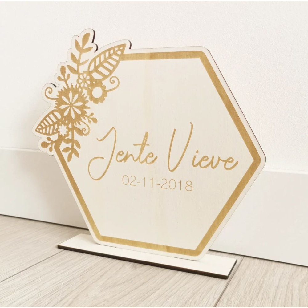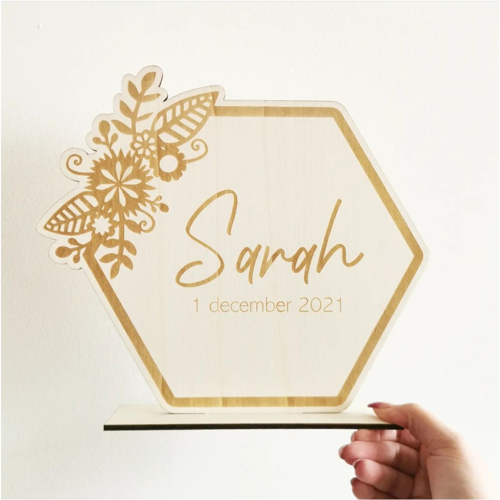 Deze mooie hexagon met bloemen is een echte eye-catcher in de babykamer.