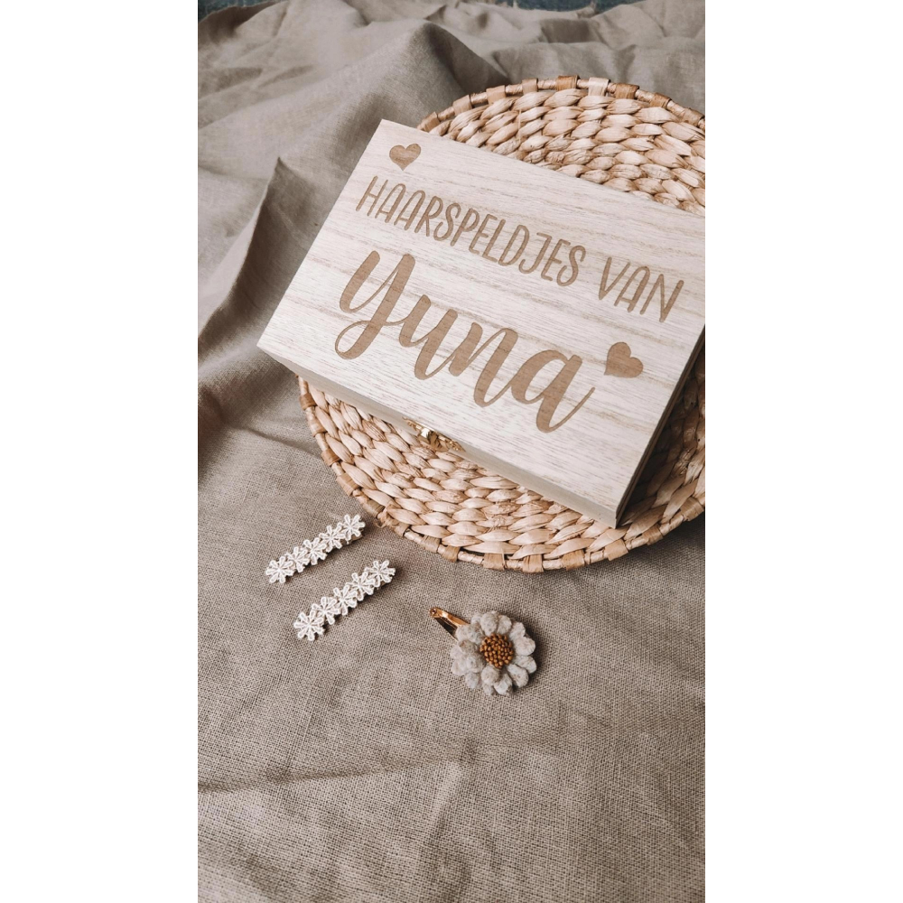 Een mooi kistje om speldjes, stiekjes, strikjes en haarbandjes in op te bergen!