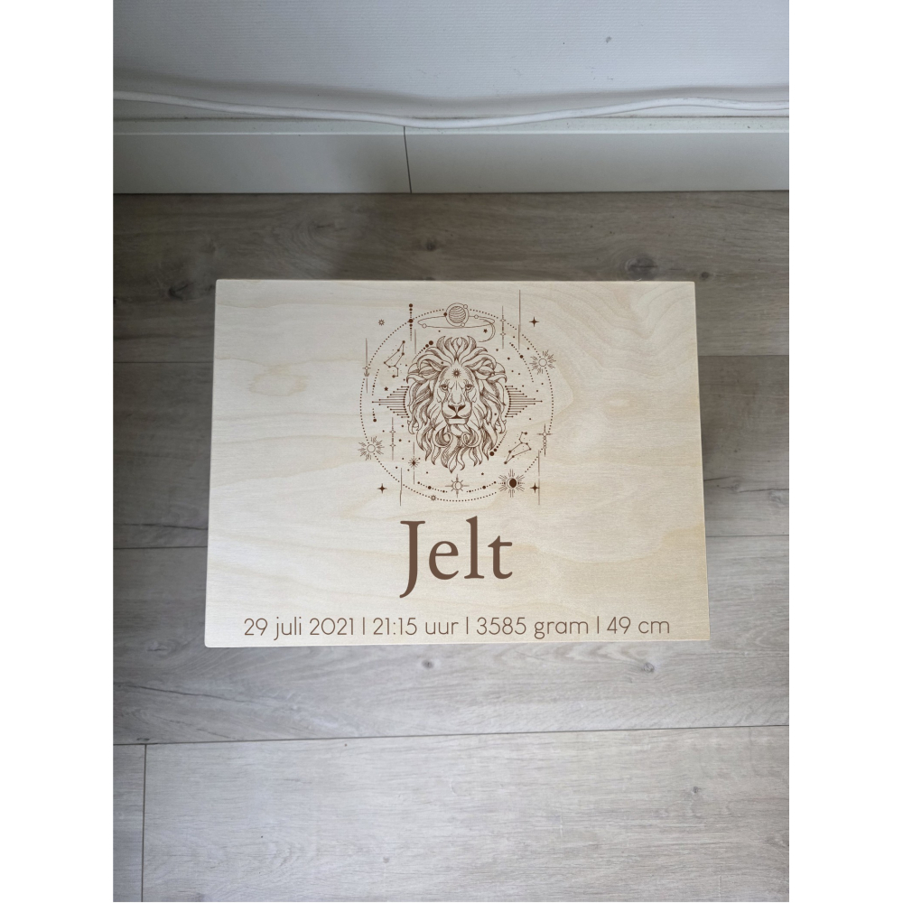 Elke kist vertelt een eigen verhaal: van geboortegegevens tot symbolen die passen bij het kindje.