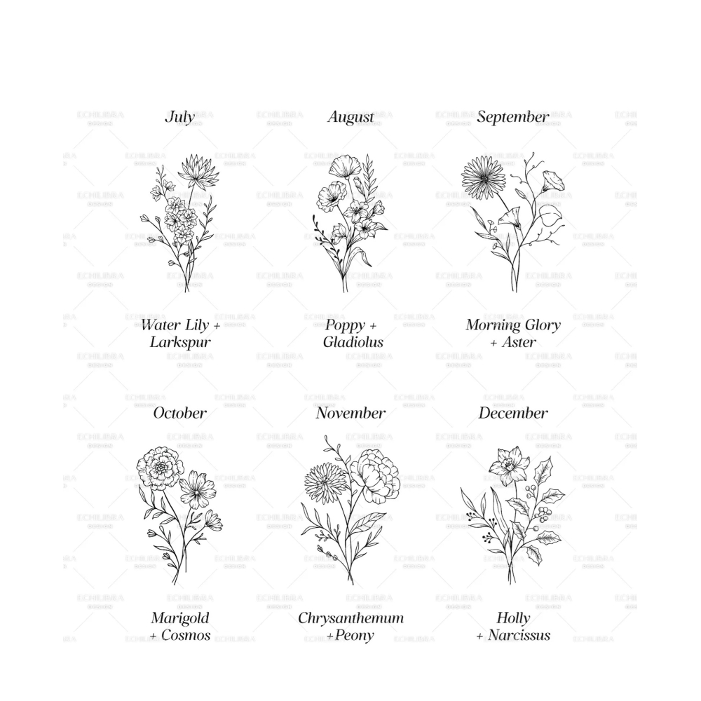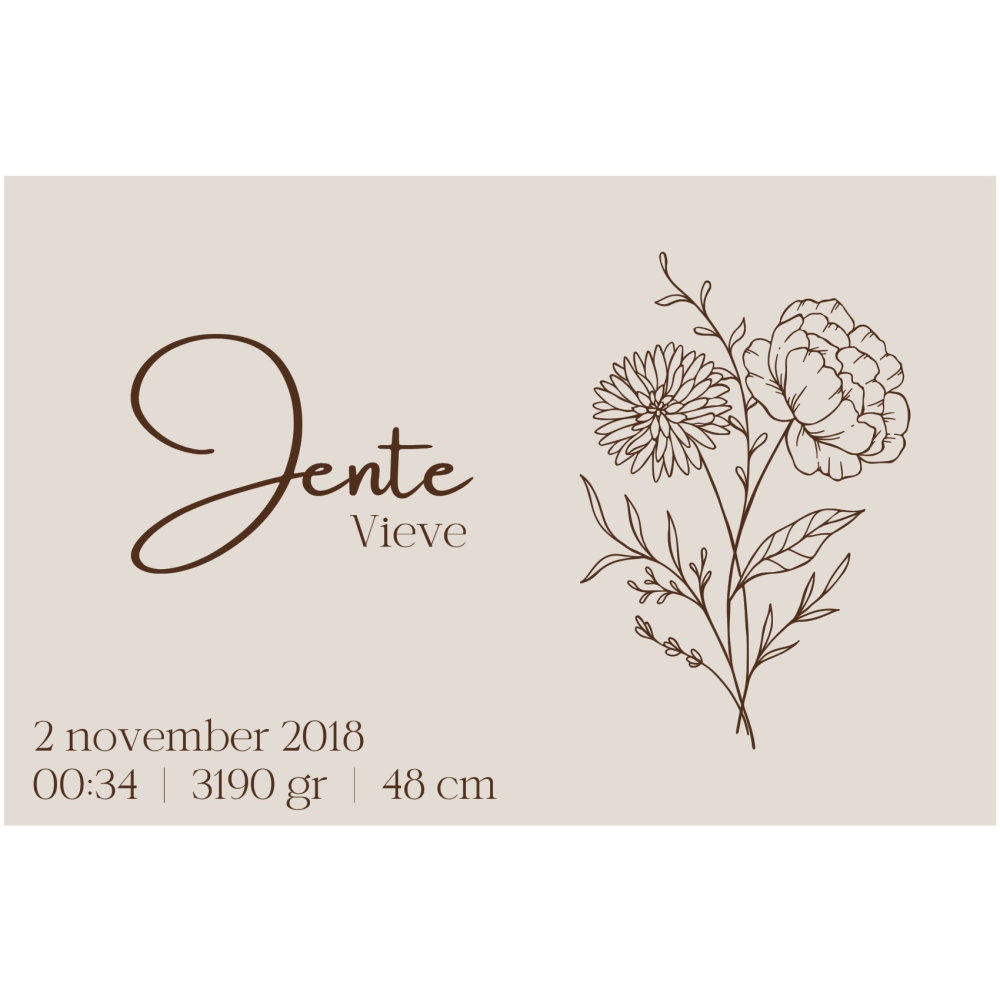 Dit ontwerp heeft sierlijke letters met een bloem die past bij de geboortemaand