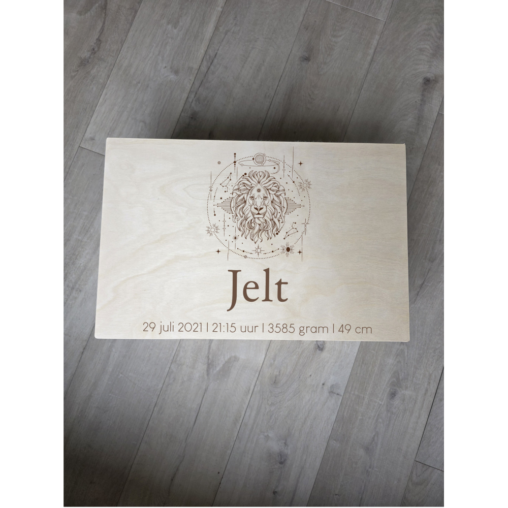 Elke kist vertelt een eigen verhaal: van geboortegegevens tot symbolen die passen bij het kindje.