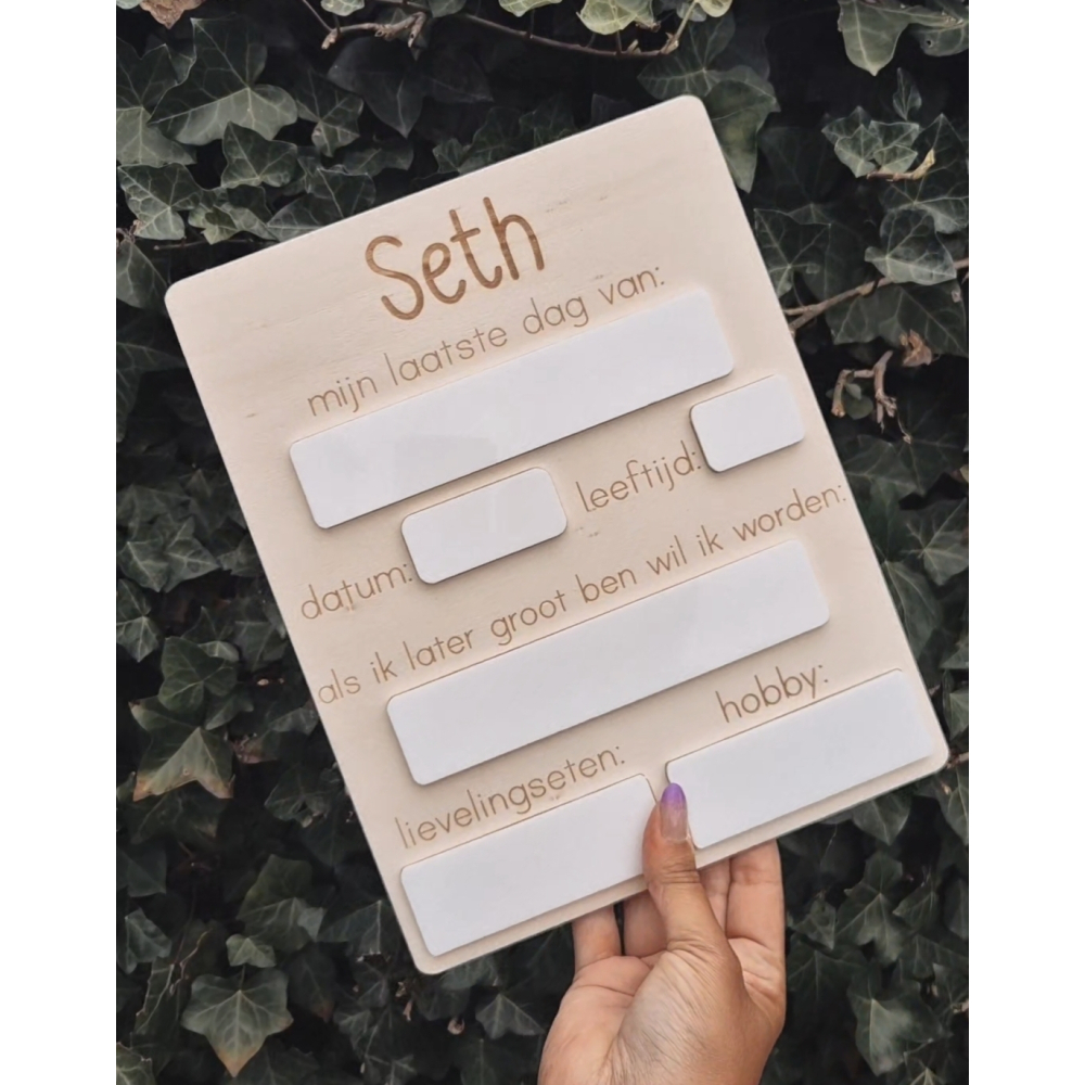 Maak van elk jaar een bijzondere herinnering met dit duurzame, herbruikbare bord. Een mooi aandenken voor jou en je kinderen – jaar na jaar.