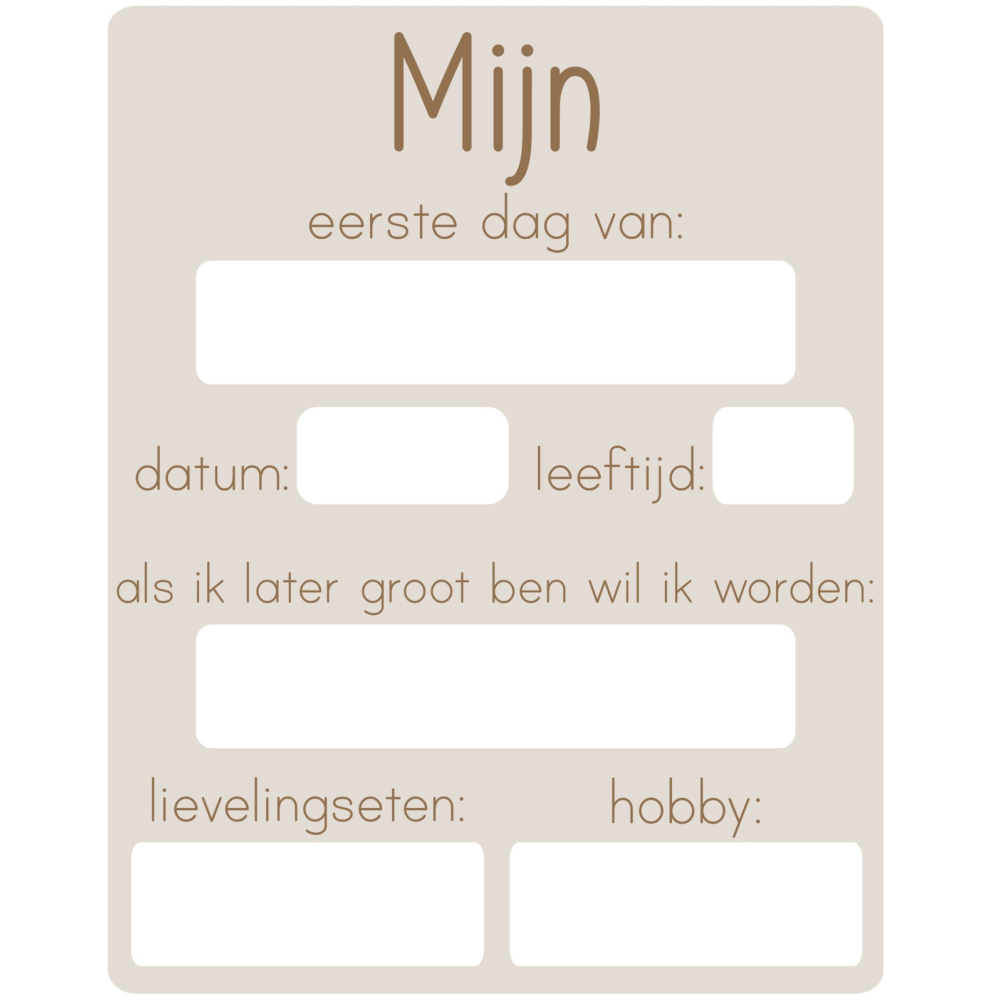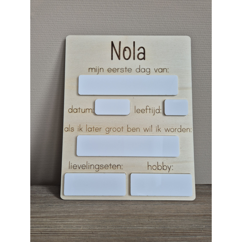 Leg de eerste schooldag van je kinderen vast met dit prachtige Eerste Dag Bord. Dit stijlvolle houten bord is de perfecte manier om ieder jaar de groei en veranderingen van je kleintje te documenteren, van de allereerste schooldag tot de laatste!