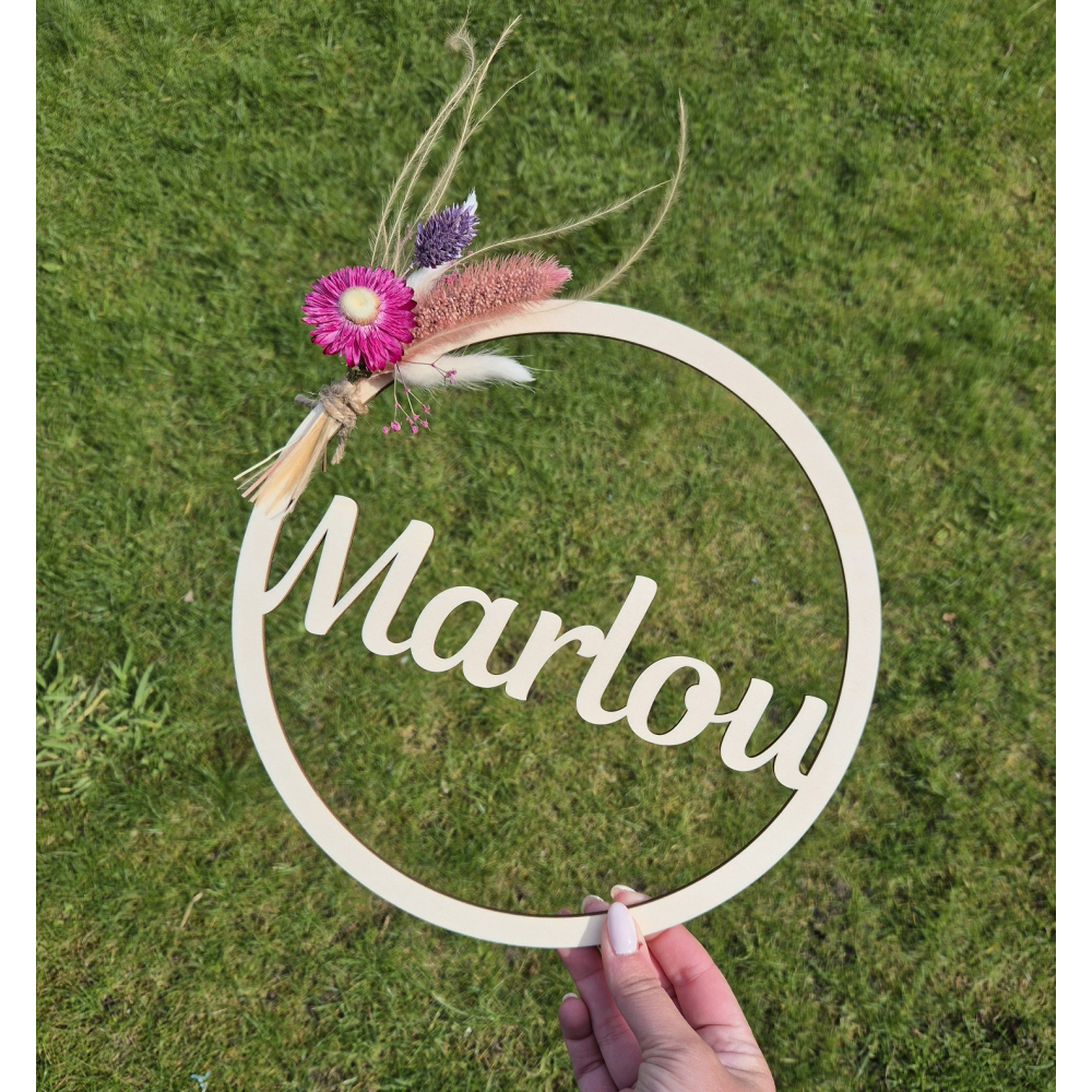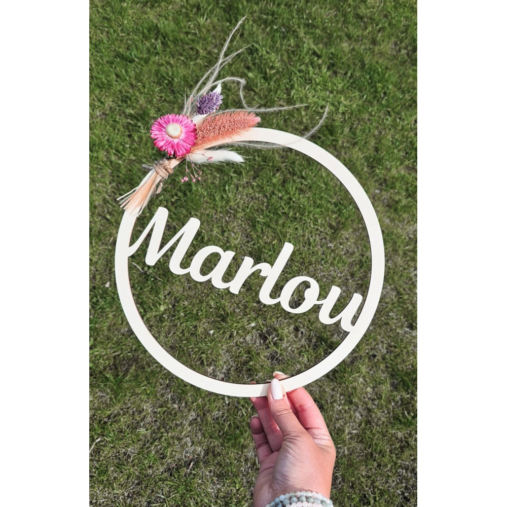 Ontdek deze prachtige houten cirkel met een diameter van 25 cm, perfect voor het decoreren van de kinderkamer! Deze unieke decoratie is gepersonaliseerd met de naam van jouw kindje en is een prachtig aandenken voor bij de geboorte.