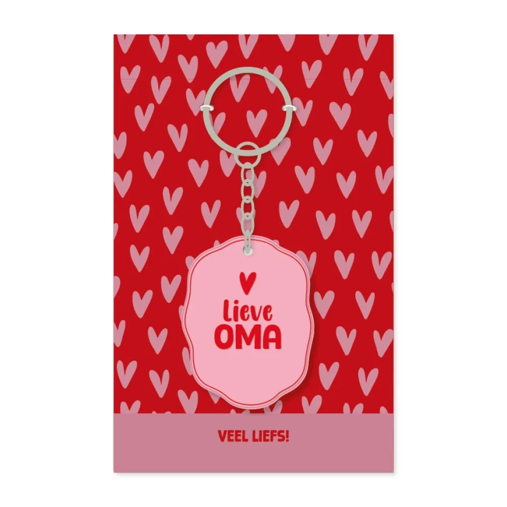 Verras oma met een lief gebaar dat ze elke dag bij zich kan dragen. Deze ovale PVC sleutelhanger met sierlijk kader en de tekst “Lieve Oma” laat haar voelen hoe bijzonder ze is. De sleutelhanger wordt geleverd met een bijpassend kaartje met hartjes en de boodschap “Veel liefs” – precies wat oma verdient.