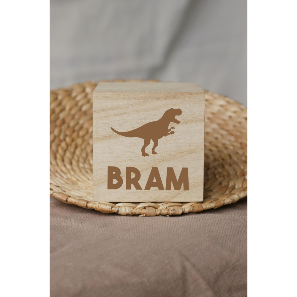 Gepersonaliseerde spaarpot met een dino, een perfect kraamcadeau!