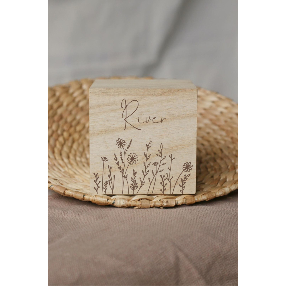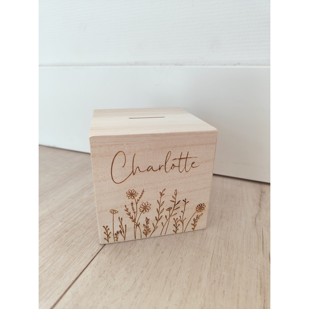 Gepersonaliseerde spaarpot met droogbloemen, een perfect kraamcadeau!