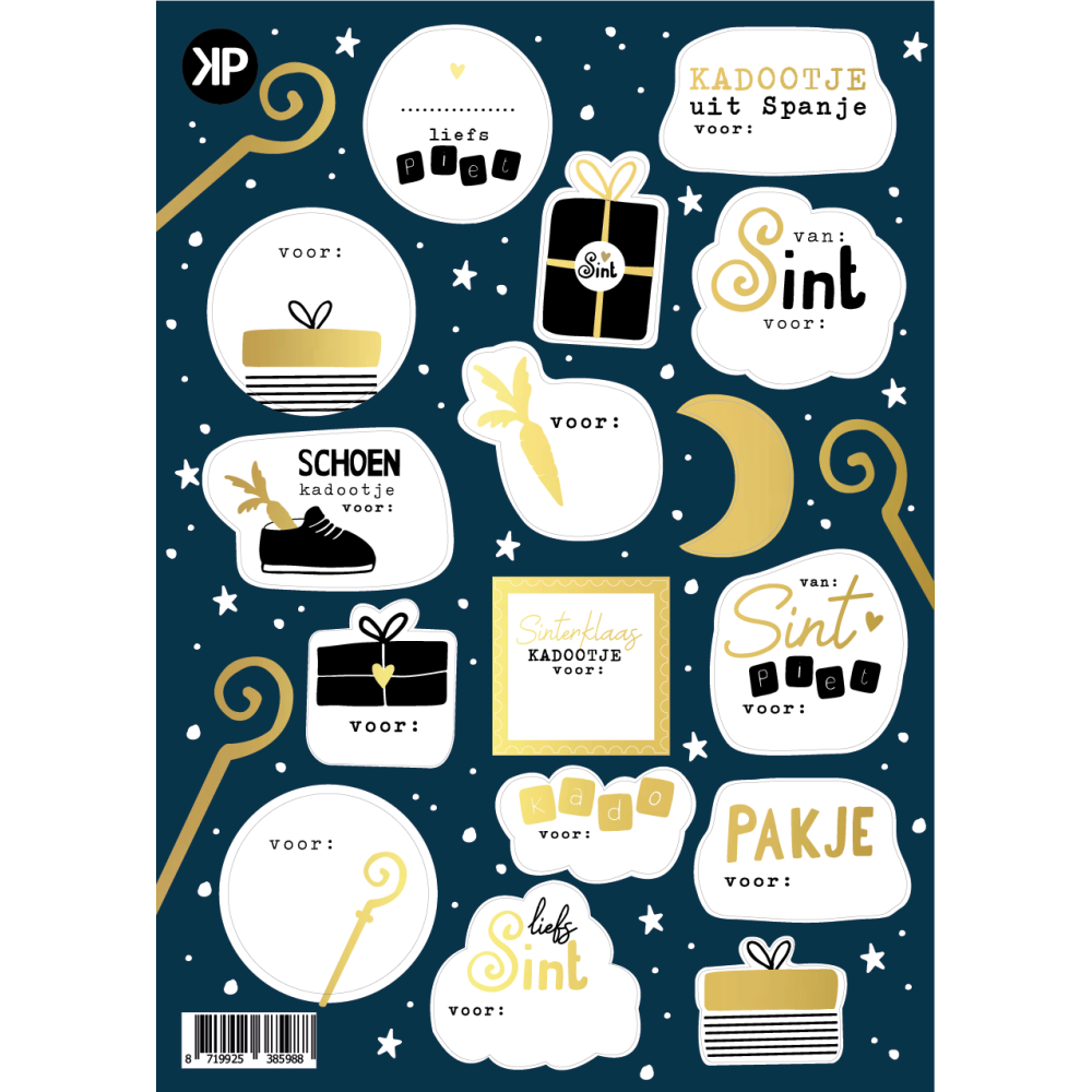 Ontdek dit prachtige A5 stickervel met luxe Sinterklaas stickers. Met glinsterende goudfolie gedrukt