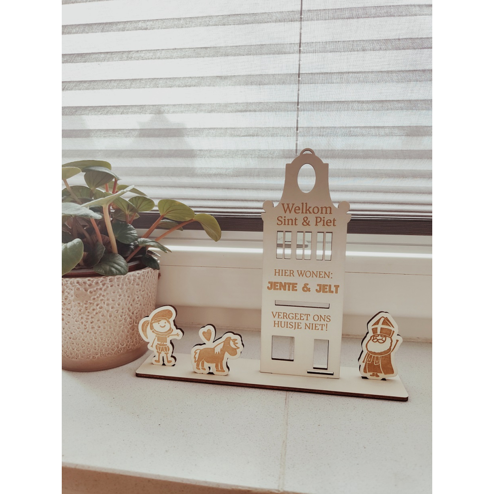 Sint, Piet en Ozosnel wandelen zo bij jullie naar binnen met dit mooie bordje voor op de vensterbank of op de kast