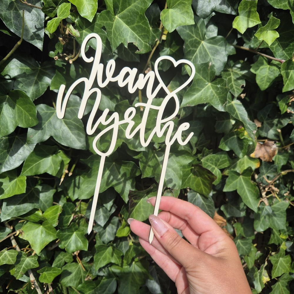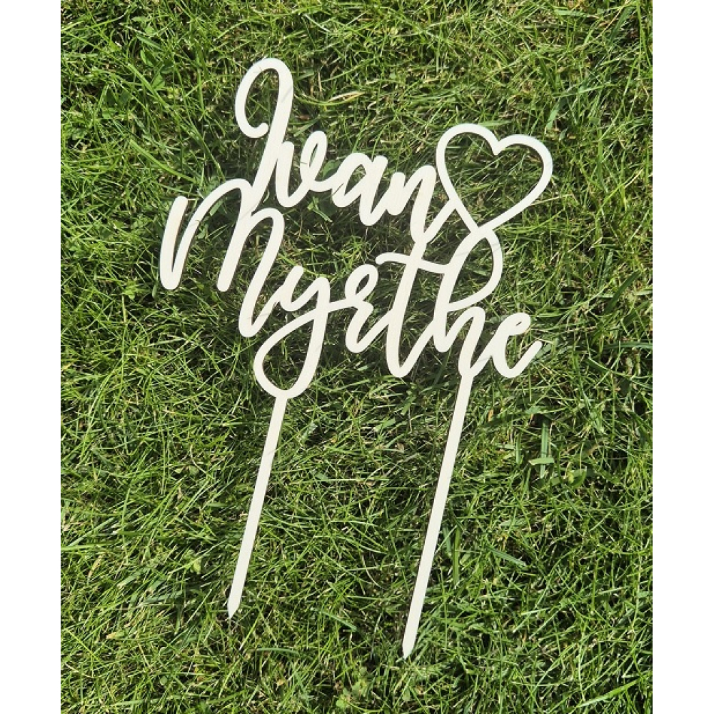 Maak jullie trouwdag nog specialer met deze prachtige gepersonaliseerde taarttopper van Stickiez. Deze unieke topper is perfect voor elke bruiloft en voegt een persoonlijke touch toe aan jullie trouwtaart.